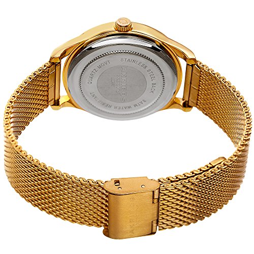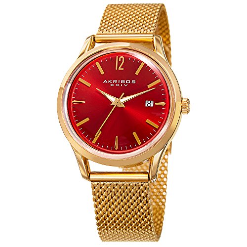 -. Title : Akribos XXIV Women's Quartz Gold-Tone Case with Gold-Tone Accented Red Sunray Dial on Gold-Tone Stainless Steel Mesh Bracelet Watch AK930RD