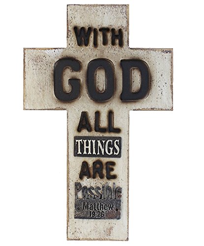Large Wooden Wall Cross - With God all Things are Possible - Matthew 19:26