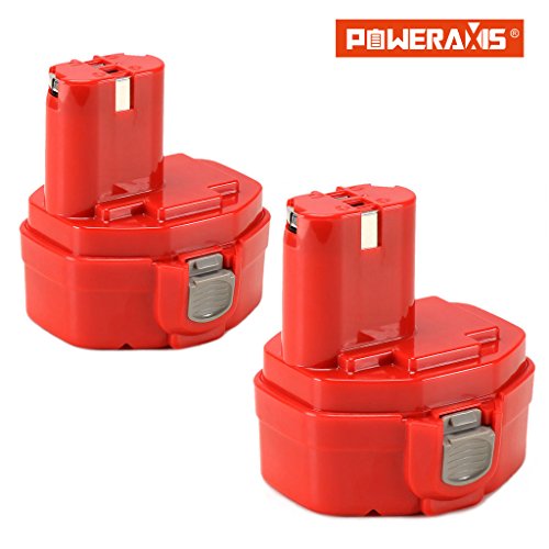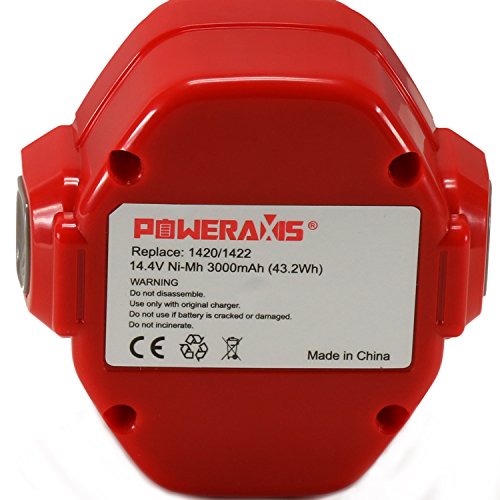 POWERAXIS 2 Packs Makita 14.4V 3.0Ah High Capcity NI-MH Power Tool Battery Replacement for Makita 1420, 1422, 1433, 1434, 1435, 1435F, 192699-A,193158-3,192600-1 Cordless Power Tool (Red)
