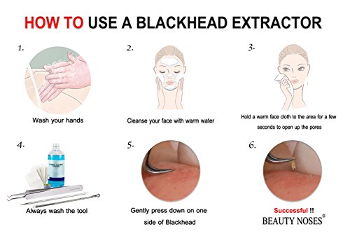 How To Use A Blackhead Extractor 1. Cleanse your face with warm water, and hold a warm face cloth to the area for a few seconds to open up the pores. Steam your face if possible over a bowl of hot water, or do so after a shower. 2. Place the loop end over the blackhead you want to extract. 3. Gently press down on one side of the blackhead - move the tool across the top (think of spreading icing on a cake...ew!) - a lot of people think the loop is there to press straight down on top