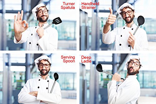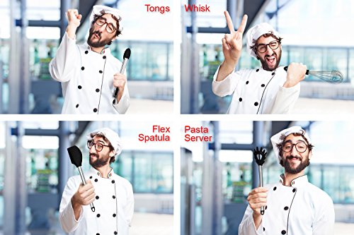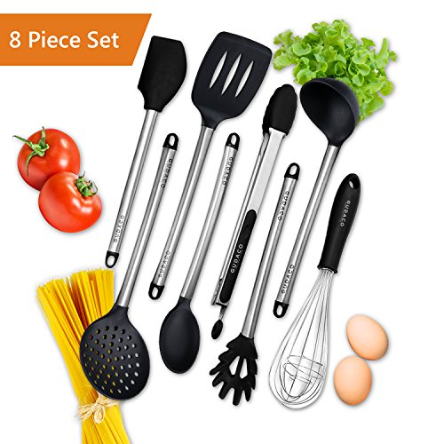 -. Feature : ULTIMATE SET OF 8 KITCHEN UTENSILS - Have everything you need to make the perfect meal at your fingertips with our complete kitchen set for cooking. Includes Turner Spatula, Serving Spoon, Handheld Strainer, Deep Ladle, Flex Spatula, Pasta Server, Tongs, Whisk. / COOKING UTENSILS DESIGNED FOR DURABILITY - Unlike other kitchen sets, ours will last for years. Made from durable materials specifically designed for everyday kitchen tasks, this is the only set you'll need. / KITCHEN GADGETS EVERYONE WILL LOVE - Whether you are looking for cooking utensils for Mom, yourself, or a friend, this quality set is the perfect gift. / SILICONE AND STAINLESS STEEL - A combination of silicone and stainless steel kitchen tools, this set is designed for function and form. Protect your pans and your tools! / SAY GOODBYE TO PLASTIC IN YOUR KITCHEN - Not only does plastic not work as well, it's potentially harmful for your health. This set contains ZERO plastic.