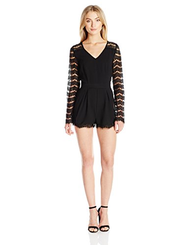SUGARLIPS Women's Lace Tuck Long Sleeve Romper