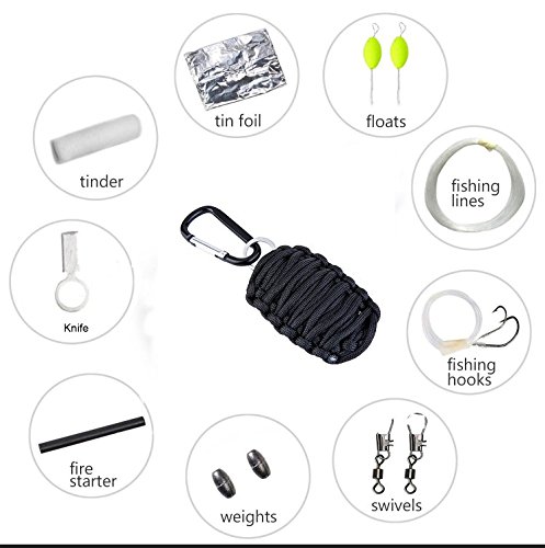 - PERFECT FOR ALL EMERGENCIES! Survival Tools Kit, Paracord Grenade with Fishing kit and pocket First-aid kit like the usual bush-craft army kits are ultimate must for every family, men and women at Home, in the Car, Outdoors, Workplace, Traveling, Road trips, Camping, Climbing, Hiking, Fishing, Hunting, Backpacking, Wilderness Adventures, Sports, Boating, Mountain biking, Lost in the jungle or sea, Urban Rescue & Survival during Earthquake, Tornadoes, Hurricanes and all Emergencies.