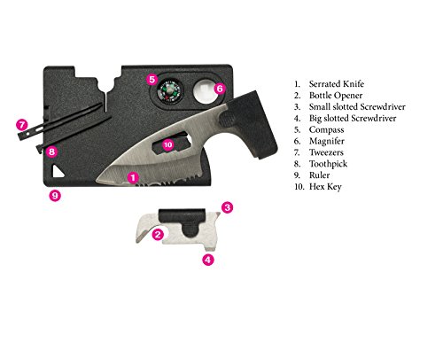 - FITS ANYWHERE: 10 survival tools in 1 slim wallet card case, slips into wallets or pockets