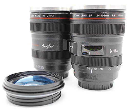 -. Feature : ¡ïGREAT COMMUTER & TRAVEL BEVERAGE HOLDER - No longer embarrassed about taking the wrong cup on the go to your office, just smile to your colleagues sipping your morning coffee with this OmeGod cool camera lens mug. / ¡ïREALISTIC ¨C This OmeGod Coffee Mug is made scale 1:1 to the Original 24-105mm f/4 L IS Lens, with very real details. It¡¯s hard to tell the difference. / ¡ïPREMIUM QUALITY-Made with premium-quality thermos materials, the ¡ï304 food-grade stainless steel which keeps your beverage warm for a long time. Also, the external is made with food -grade ABS which helps to keep warm and avoid scald. / ¡ïMULTI-PURPOSE CONTAINER ¨C This OmeGod lens mug can be used not only as a coffee mug, but also as a container for your beverage, or your leisure afternoon tea. Perfect suit with OmeGod ¡ïTea Infusers, which also available on Amaon.com. Moreover, you can just use it as a home decor, storage your little gadgets like coins, spoons, etc. / ¡ïIDEAL GIFT for ALL -This OmeGod Camera Tumbler Mug is not only the perfect gift for your friends who love DRINKING COFFEE & TEA, who love TRAVELLING & PHOTOGRAPHY, but also ideal gift for those who love NOVELTY & SURP.R.ISE, because this is a MULTIPURPOSE mug which can also be used as ORGANIZER. Obviously, this OmeGod camera lens tumbler mug will do the job.