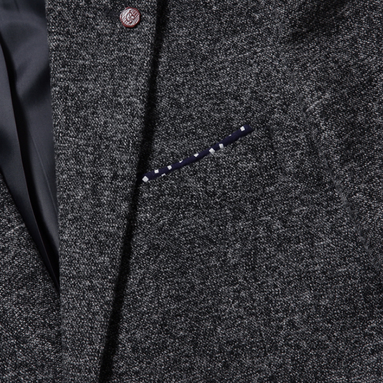 - 포켓 부분의 패턴 행커치프로 포인트 멋을 연출함.