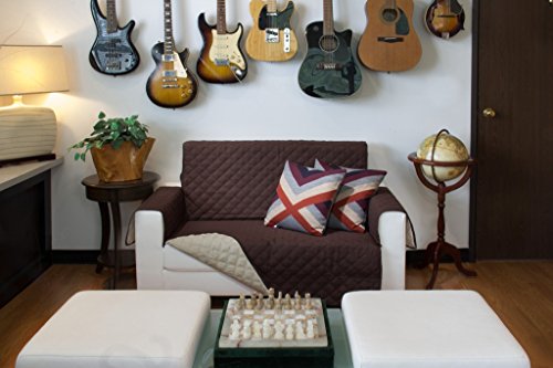 -. Feature : PROTECTION:Protects Furniture stains, pets & light Spills. Ideal for home with kids & Pets. / COMFORT:Uniquely made with double diamond quilting for extra comfort and sophisticated look. / PERFECT FIT: Designed exclusively with a removable strap, in back, to secure cover in place and avoid shifting.( Not recommended for leather sofas) / REVERSIBLE:Change the room décor in a matter of minutes by simply switching sofa cover to its reversing side to give the room a complete makeover. Reversing side has a stylish coordinating trim. / SIZE OPTIONS: Available SOFA, LOVESEAT & CHAIR, COLOR OPTIONS: : chocolate / taupe - black / burgundy - grey / light grey - sage / tan - burgundy / taupe - black / grey