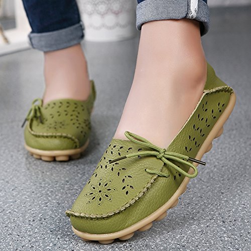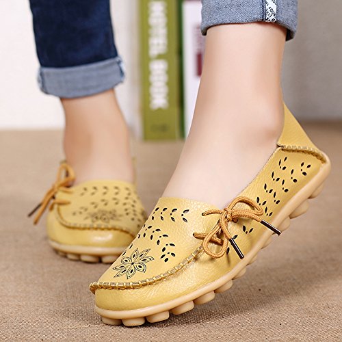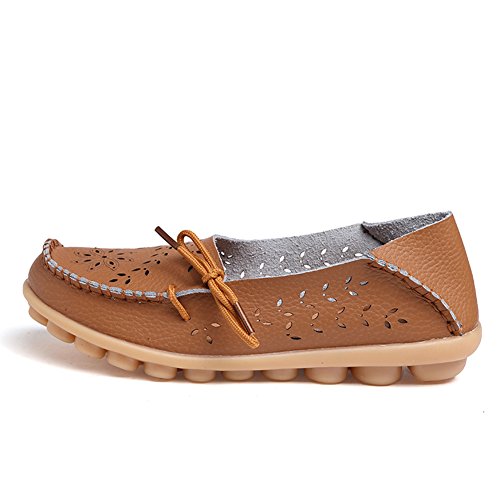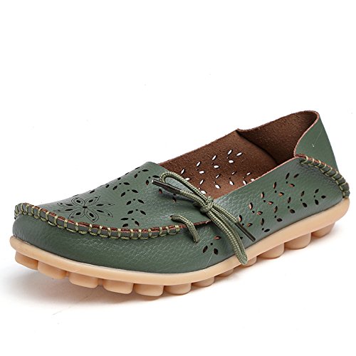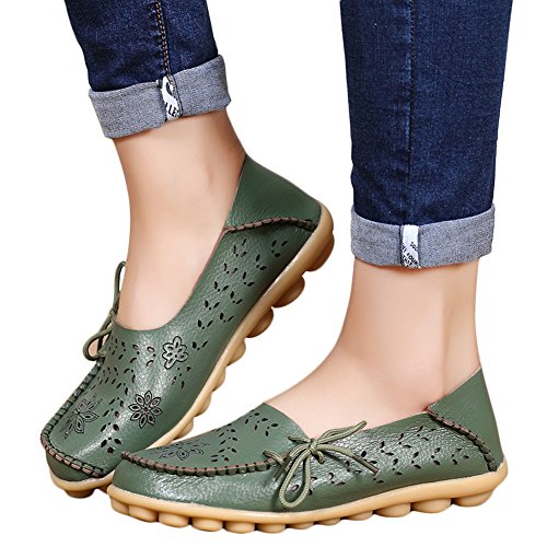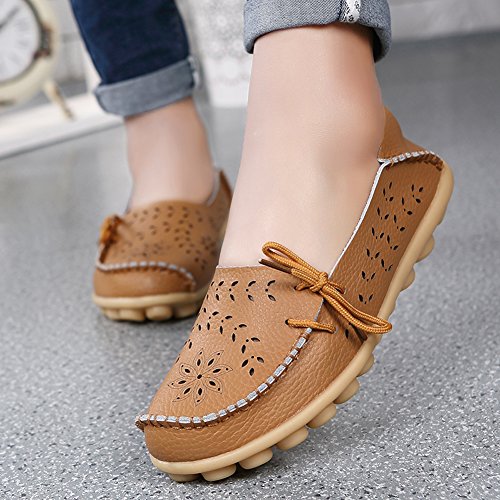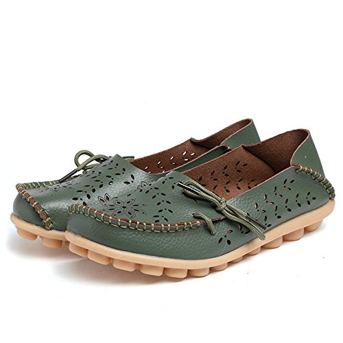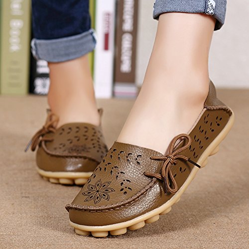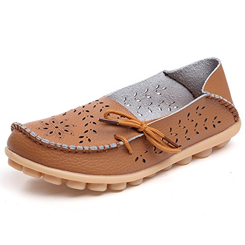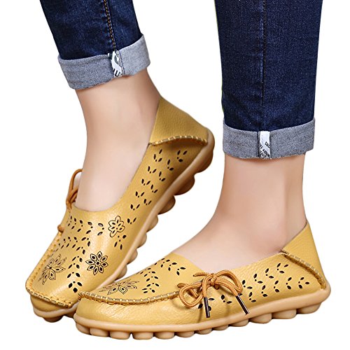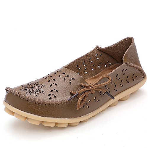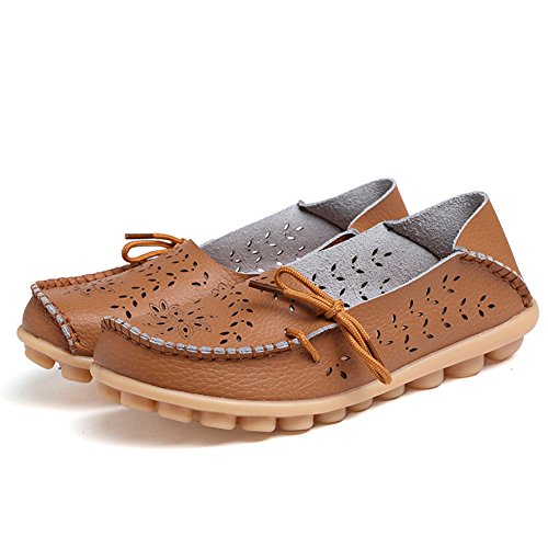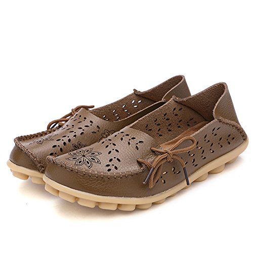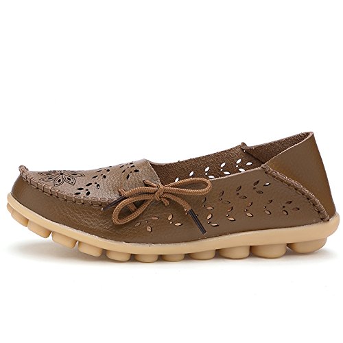 | Lucksender Womens Hollow Out Carving Casual Leather Driving Flat Loafers Shoes |