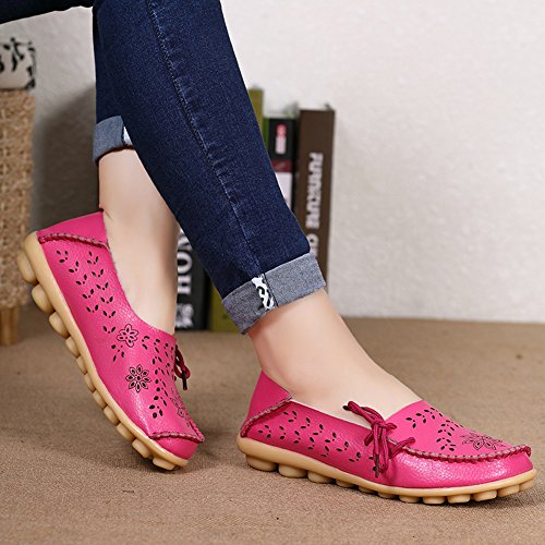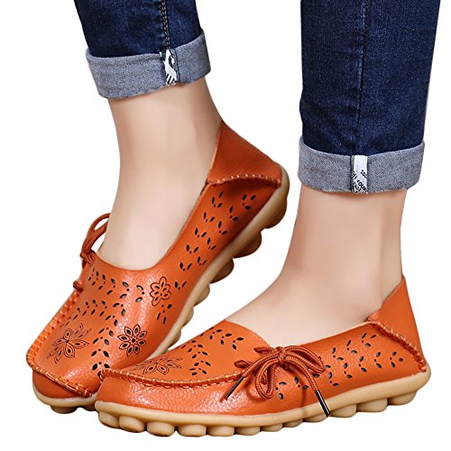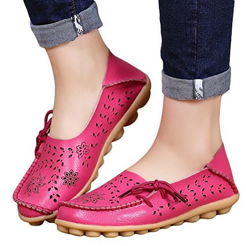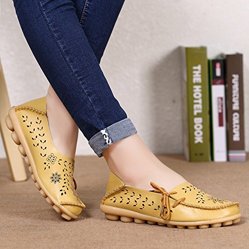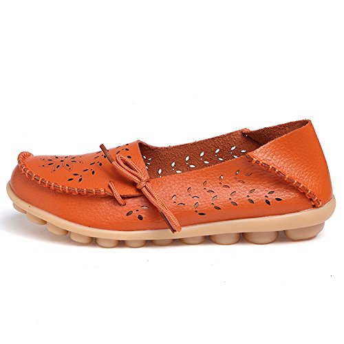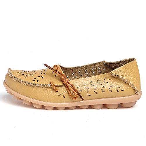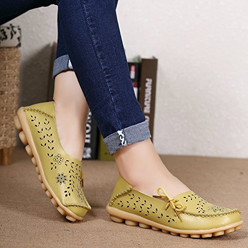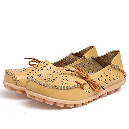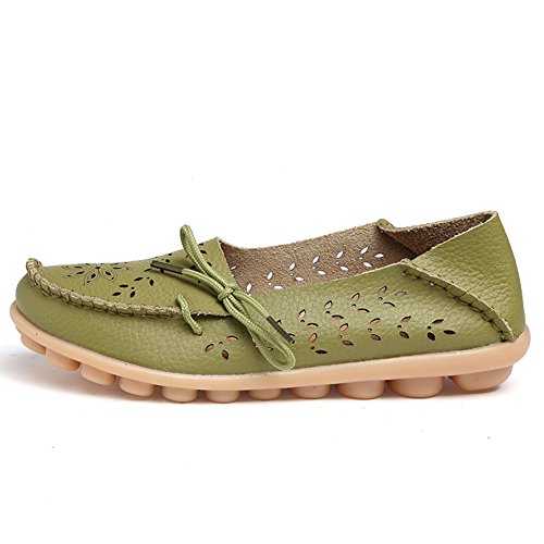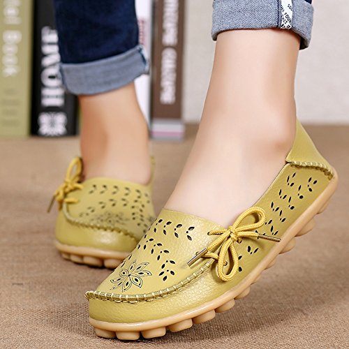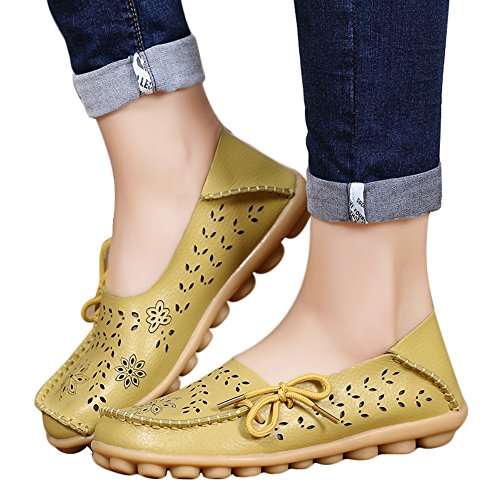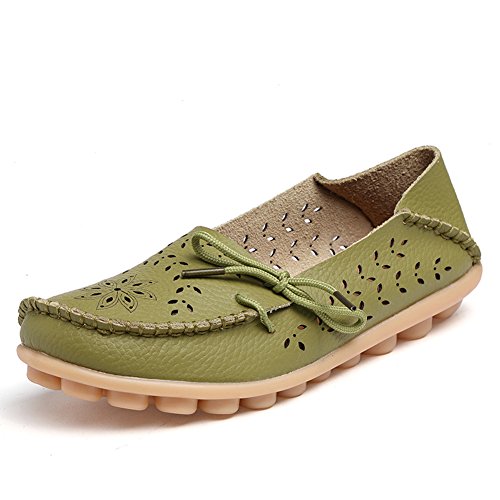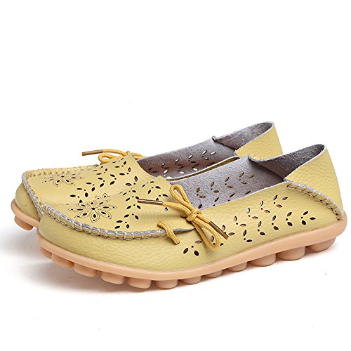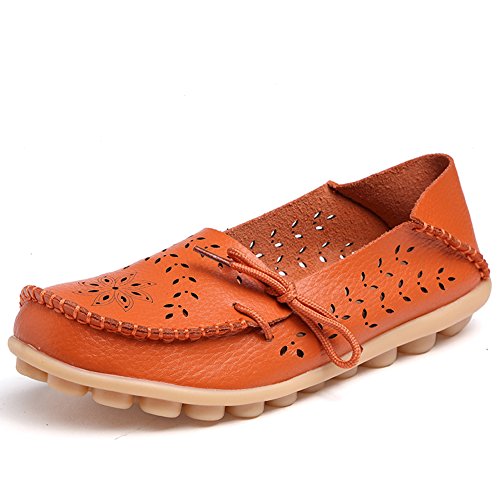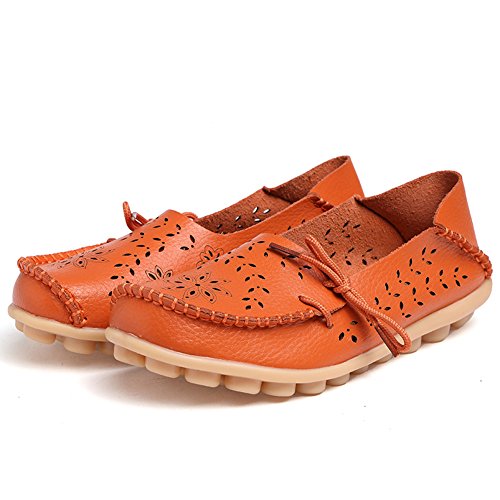 | Lucksender Womens Hollow Out Carving Casual Leather Driving Flat Loafers Shoes |