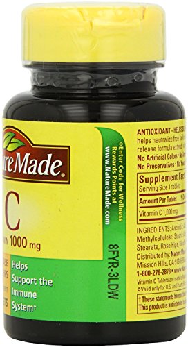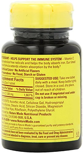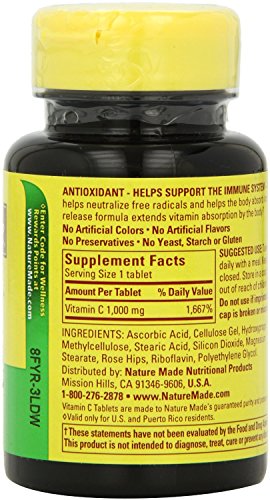 HELPS SUPPORT THE IMMUNE SYSTEM: Nature Made Vitamin C with Rose Hips Timed Release 1000 mg. helps support the immune system and helps neutralize free radicals. Vitamin C is necessary for the body to manufacture collagen, which is important for healthy skin. Nature Made Vitamin C Timed Release is formulated with Rose Hips, a rich source of this essential nutrient. Vitamin C Timed Release with Rose Hips may be a great option for those looking to supplement their diet and meet their daily vitamin