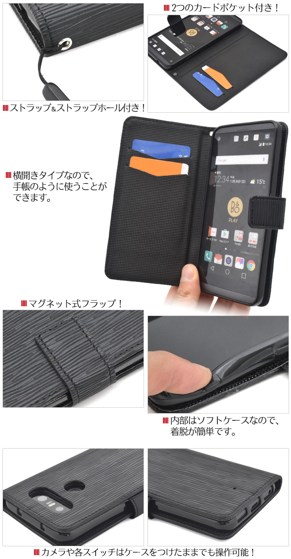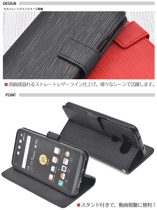 使いやすい手帳型ケース! isai Beat LGV34/V20 PRO L-01J用ストレートレザーデザインスタンドケースポーチ | | | |