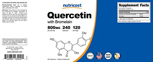 Each serving of Nutricost Quercetin contains 800mg of high quality Quercetin and 165mg of Bromelain. There are 120 servings per bottle if taken according to recommended serving size.Feature