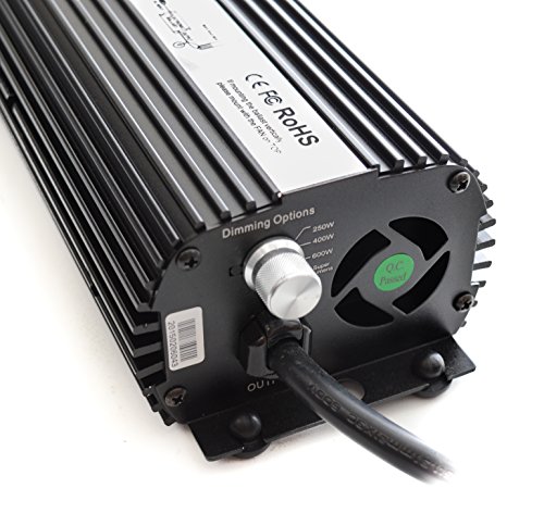 - Feature : Great start to any indoor garden setup. Mounts vertically or horizontally with built-in mounting flanges. Quick lamp ignition to light up bulbs 1-2 minutes max. / Automatic frequency adjustment for MH or HPS bulbs and stable light output by constant lamp voltage for flicker free lamps. / Variable output setting for 250, 400, or 600-Watt bulbs. "Super Lumens" setting boosts output by 10% to extend the service life of exhausted bulbs. / Operates on 110-120 Volt or 230-240 Volt input. Built-in fuse for overload protection. 6-foot power cord included. / Dual cooling fans, aluminum body, and forged heatsink fins for efficient heat dispersion and minimizes ballast temperature. ETL Certified