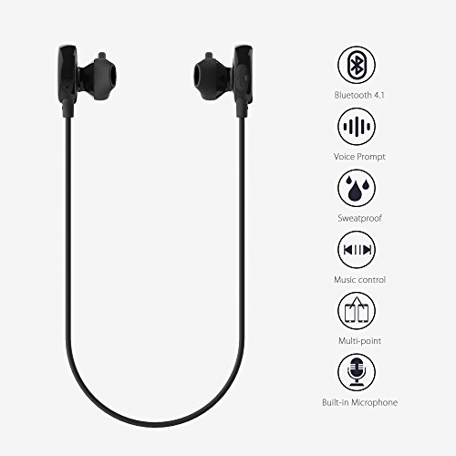 iXCC Bluetooth v4.1 Wireless Headphones with Built-in Mic, Noise Cancelling Earphones for iPhone 7 6s Plus, Galaxy S8, S7 and More - Black