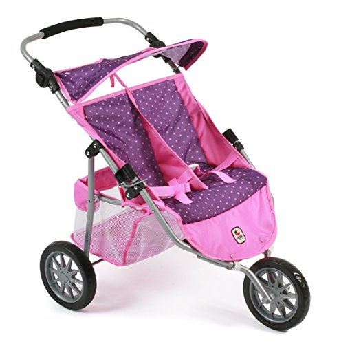 Bayer Chic 2000 697 40 - Zwillings-Jogger, Zwillingspuppenwagen fur Puppen bis 50 cm, Dots Purple Pink