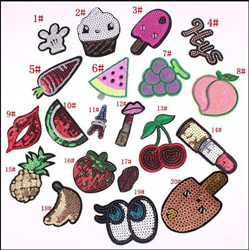 Mangocore 20PCS Mix Fruit Patch Iron On Cute Patches Sequin Cheap Embroidered Cartoon Patches For Kids Clothes Stickers Jeans Random