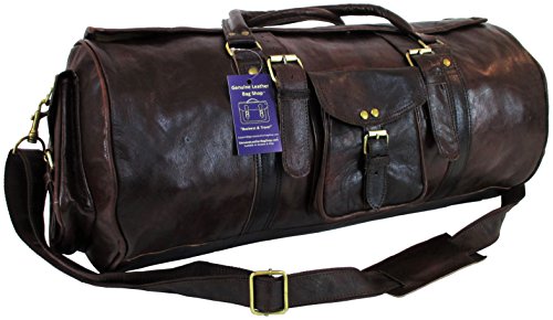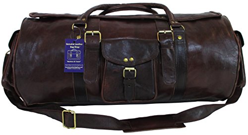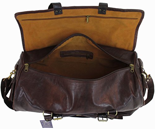-. Title : Genuine Leather Bag Shop 24" Vintage Style Flap Duffel Weekender Travel Tote