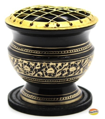 Govinda® - Tall Decorated Brass Charcoal Screen Incense Burner