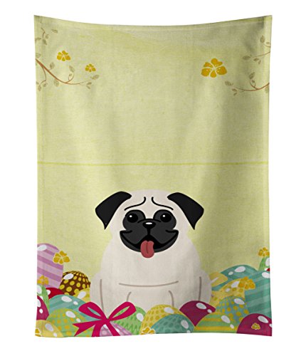 Caroline's Treasures Easter Eggs Pug Cream Kitchen Towel, Multicolor, 25" x 15"