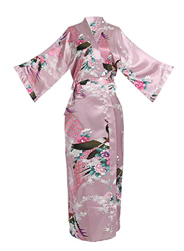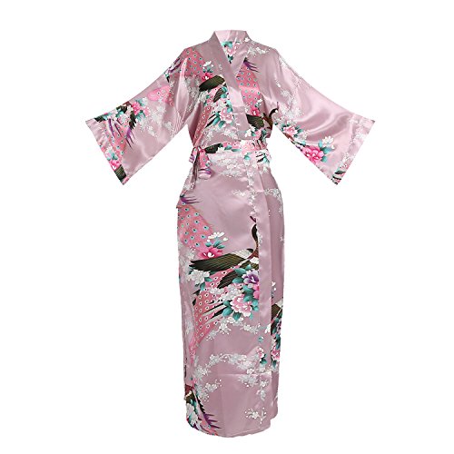Women's Kimono Long Robe - Peacock & Blossoms Long Kimono Robe(X-Large,Mauve)