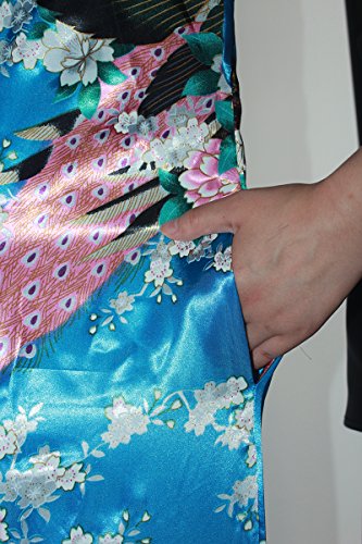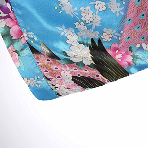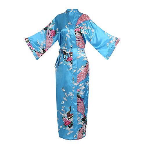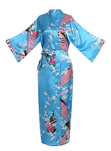 Women's Kimono Long Robe - Peacock & Blossoms Long Kimono Robe(Medium,Turquoise)