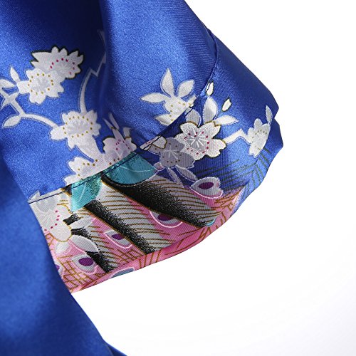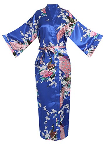 Women's Kimono Long Robe - Peacock & Blossoms Long Kimono Robe(Medium,Royal-Blue)