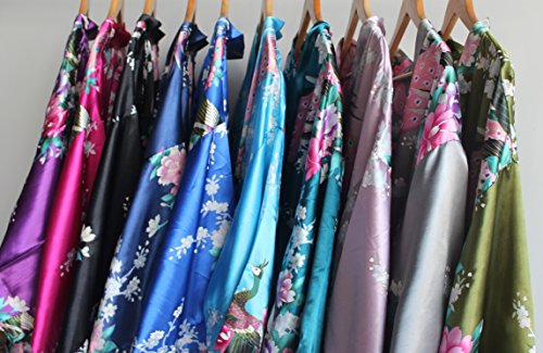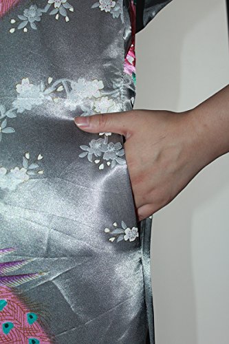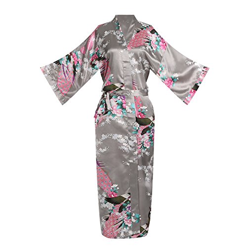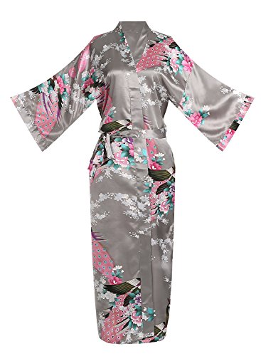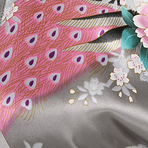Women's Kimono Long Robe - Peacock & Blossoms Long Kimono Robe(Medium,Grey)