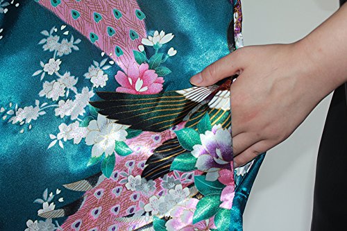 Women's Kimono Long Robe - Peacock & Blossoms Long Kimono Robe(X-Large,Turquoise)