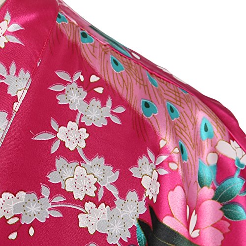 Women's Kimono Long Robe - Peacock & Blossoms Long Kimono Robe(X-Larage,Fuchsia)