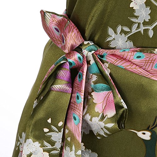 Women's Kimono Long Robe - Peacock & Blossoms Long Kimono Robe(XX-Large,Olive)