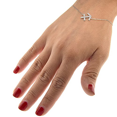 -. Title : Sterling Silver Micro Pave Cubic Zirconia Anchor Charm Bracelet, 7 - 8 inches long