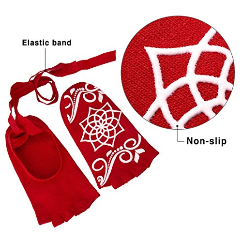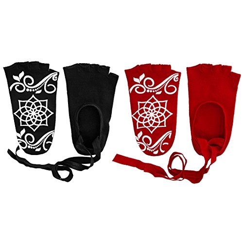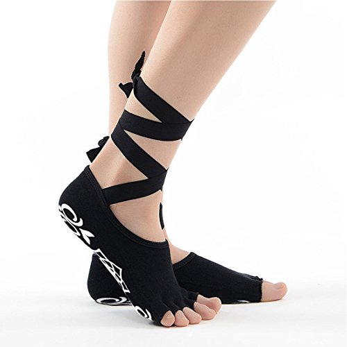RoryTory 2 Pairs Ballet Barre Toeless Anti Slip Grip Yoga Socks With Ribbon