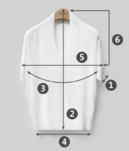 SIZE ①CUFF ②BACK ③BUST ④HEM ⑤SHOULDER ⑥SLEEVE