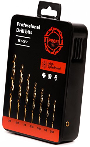 German Professional High Speed Steel Drill Bit Set of 7 (twist shank) - with metal Pro Case