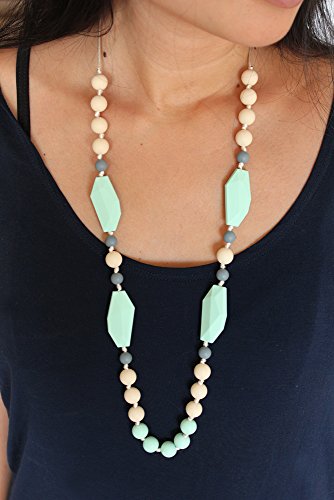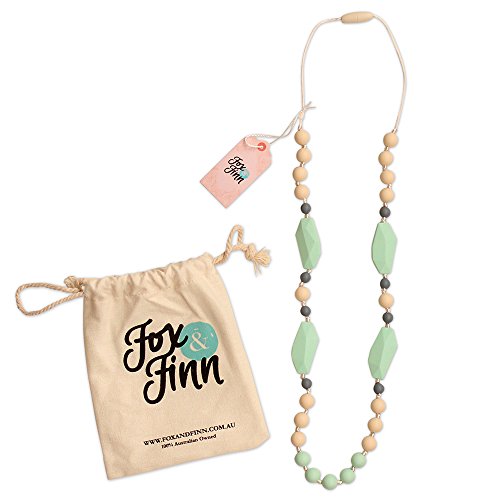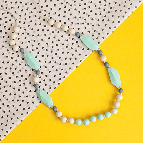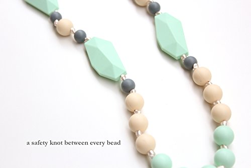 Fox and Finn 'Mackenzie' Silicone Teething Necklace for Babies | Safety Knotted Silk Rope | Does Not Pull Out Hair | 14 Inch Drop (mint + smoke + latte)