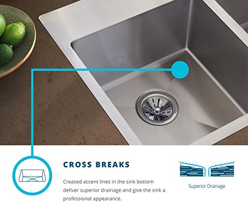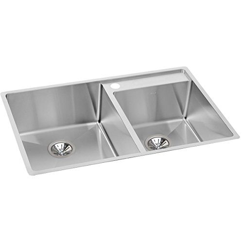 Elkay Crosstown ECTRUD31199RDBG1 Offset Double Bowl Undermount Stainless Steel Kitchen Sink Kit with Water Deck