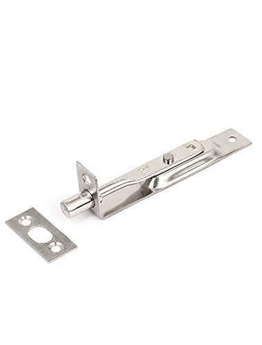 -. Feature : Package Content: 1 x Flush Door Bolt, Several Installation Part; Product Name: Flush Door Bolt; Material: Stainless Steel / Weight: 62g; Mounting Hole Diameter: 5mm/ 0.2" / Dimension: 105 x 18 x 30mm/ 4" x 0.7" x 1.2" (L*W*H); Main Color: Silver Tone / Screw Length: 15mm/ 0.6"; Plate Size: 40 x 18 x 1mm/ 1.6" x 0.7" x 0.04" (L*W*Thick) / Bolt Size: 10 x 15mm/ 0.4" x 0.6" (D*L); Plate Hole Distance: 26mm/1"