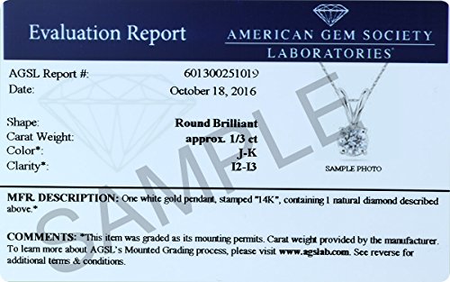 -. Title : 1/3 Carat Round Diamond Solitaire Pendant in 14K White Gold