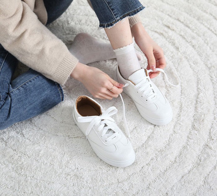商品名:スニーカー レディース レースアップ シンプル 2017 秋 冬 ファッション 靴 婦人靴