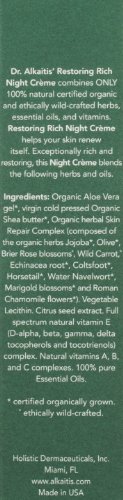 ReleaseDate : 2015-02-01 Studio : DR. ALKAITIS Publisher : DR. ALKAITIS Binding : Health and Beauty Product Description This rich luxurious Organic Night Creme restores the skin's natural radiance while you sleep and diminishes the appearance of fine lines, wrinkles and open pores. 0