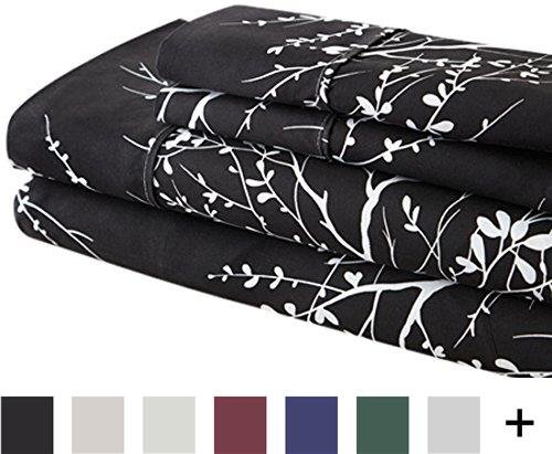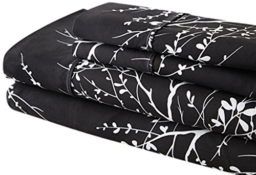 Spirit Linen Hotel 5th Ave Foliage Collection Printed Luxurious Microfiber Sheet Set, Full, Black/Ivory