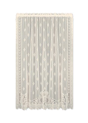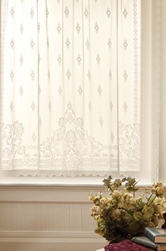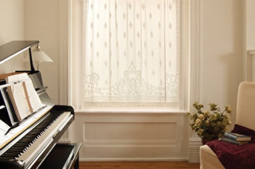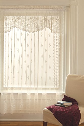 Heritage Lace Downton Abbey Milady 60"X63" Cream Panel. Sophisticated luxury marks the Milady lace panel. Simple design elements and a beautifully crafted scrollwork border make this a stunning, easy-care window treatment. Use panels for the chic, dressy look of full-length curtains. Set a theme with curtains, then complement or complete it. Lace sets the stage for the Lady Mary vignette. Home fashions include lace window treatments complemented by lace appliqued velvet runners and pillows. The heiress also inspires a classic collection of elegant women's lace accessories-a formal addition to any soiree. 1.5" Header 1.5" Rod pocket. Scalloped bottom edge. Fine-gauge Boucle lace. Made in USA Downton and Downton Abbey | 2014 Carnival Film and Television Limited. All Rights Reserved. 100-Percent polyester. Machine wash cold, gentle. Do not bleach. Lay flat or hang to dry. Touch up with cool iron if desired.Feature