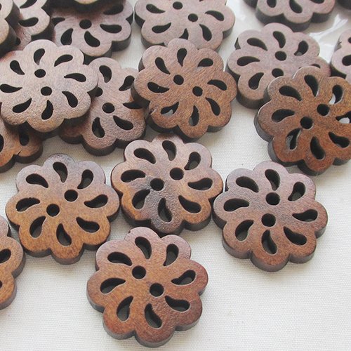 Chenkou Craft New Hollow Flower Wood Buttons 20mm Sewing Craft Brown Wholesale 50pcs