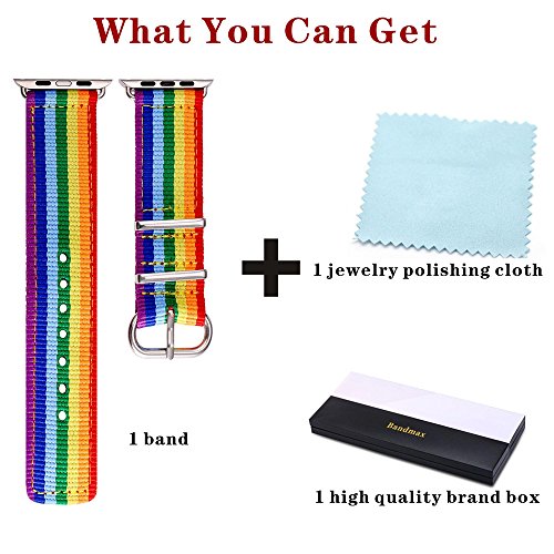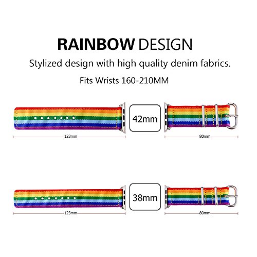 Rainbow Wristband for Apple Watch 42MM, Bandmax Watch Strap Comfortable Denim Fabric Replacement Band for Apple Watch Series 2/1