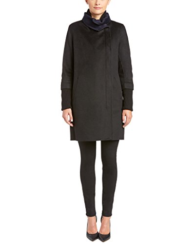 Studio : Elie Tahari Women's Outerwear Publisher : Elie Tahari Women's Outerwear Binding : Apparel Product Description Our mika double face wool coat has a beautiful drape front collar and easy asymmetrical zipper closure. It's ribbed knit cuffs and knit collar add a touch of feminine details and create an extra layer of warmth. 0