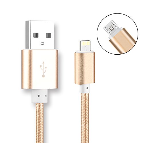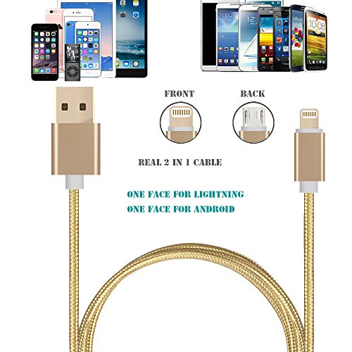 Seekermaker 2-in-1 USB Cable ,Lightning and Micro USB Braided Cord for iPhone 7/7Plus,iPhone 5/5s/5c,SE,iPhone 6/6s/Plus and Samsung Galaxy, Sony, Nexus, Nokia,HTC & more (Gold)