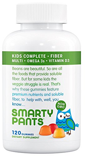 -. Title : SmartyPants Kids Complete and Fiber Gummy Vitamins: Multivitamin, Inulin Prebiotic Fiber & Omega 3 DHA/EPA Fish Oil, Folate (Methylfolate), Methyl B12, Vitamin D3, 120 count (30 Day Supply)