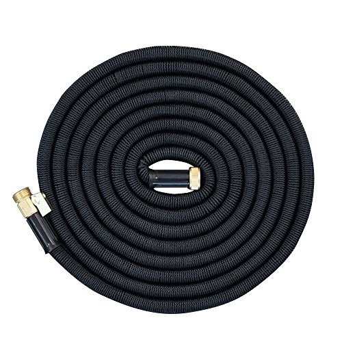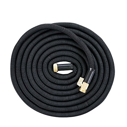 Expandable Garden Hose,Expanding Water Hose Heavy Duty Latex Solid ON/OFF Brass Valve Connector Includes FREE Carry Bag for Storage Water Hose- Extra Washers- FULL WARRANTY (100 FT, BLACK)