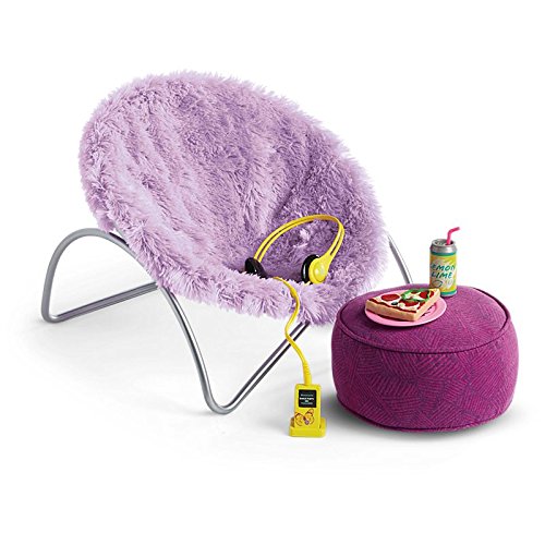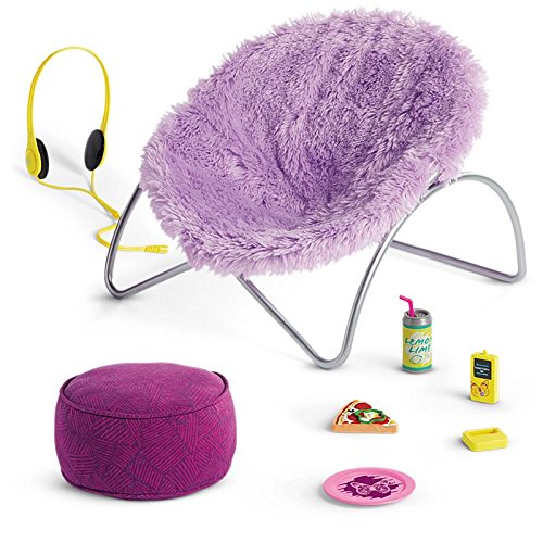 Studio : American Girl Publisher : American Girl Binding : Toy Product Description From American Girl: This is Gabriela's favorite place to kick back and relax after dance practice. Includes: 1. A soft, fuzzy papasan-style chair; 2. A colorful ottoman where she rests her feet; 3. A canary-yellow pretend MP3 player and headphones to play Gabriela's favorite tunes; 4. A slice of faux pizza on a plate and a cold drink for snacktime. Gabriela comes in this package, along with her book and her PJ's. Includes: Doll, book, PJs for doll, ottoman and chair and all other accessories shows. Great gift package! 0
