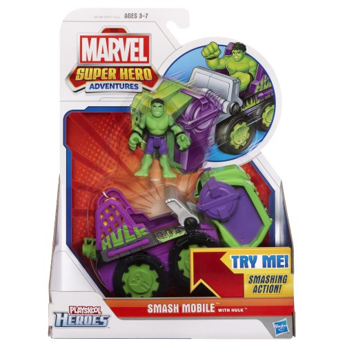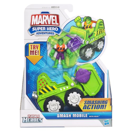 -. Binding : Toy -. Brand : Super Hero Adventures -. Department : baby-boys -. EAN : 0653569676607 -. Feature : Super-cool Smash Mobile vehicle / Comes with Hulk figure / Hulk figure can ride on top / Fist pops out / Vehicle comes with figure -. IsAdultProduct : 0 -. Label : Marvel -. LegalDisclaimer : IN NO EVENT, REGARDLESS OF CAUSE, SHALL Sharlynslivingbooks BE LIABLE FOR ANY INDIRECT, SPECIAL, INCIDENTAL, PUNITIVE OR CONSEQUENTIAL DAMAGES OF ANY KIND, WHETHER ARISING UNDER BREACH OF CONTRACT, TORT (INCLUDING NEGLIGENCE), STRICT LIABILITY OR OTHERWISE, AND WHETHER BASED ON THIS AGREEMENT OR OTHERWISE, EVEN IF ADVISED OF THE POSSIBILITY OF SUCH DAMAGES. -. Manufacturer : Marvel -. Model : 38138 -. MPN : 381380000 -. PackageQuantity : 1 -. PartNumber : 381380000 -. ProductGroup : Toy -. ProductTypeName : TOYS_AND_GAMES -. Publisher : Marvel -. ReleaseDate : 2012-08-09 -. Studio : Marvel -. Title : Marvel Super Hero Adventures Playskool Heroes Smash Mobile With Hulk - Colors May Vary -. UPC : 653569676607 -. Warranty : NA